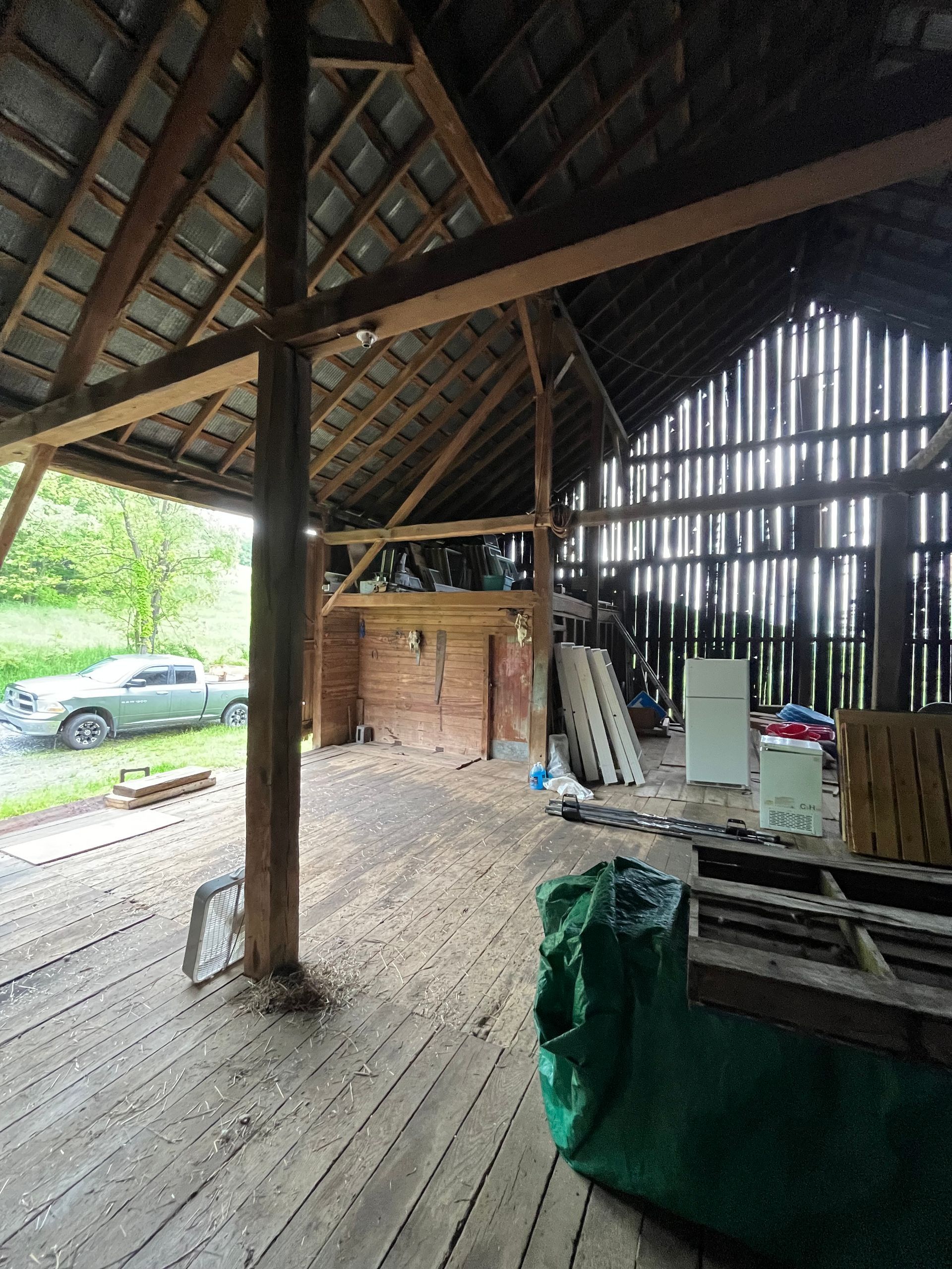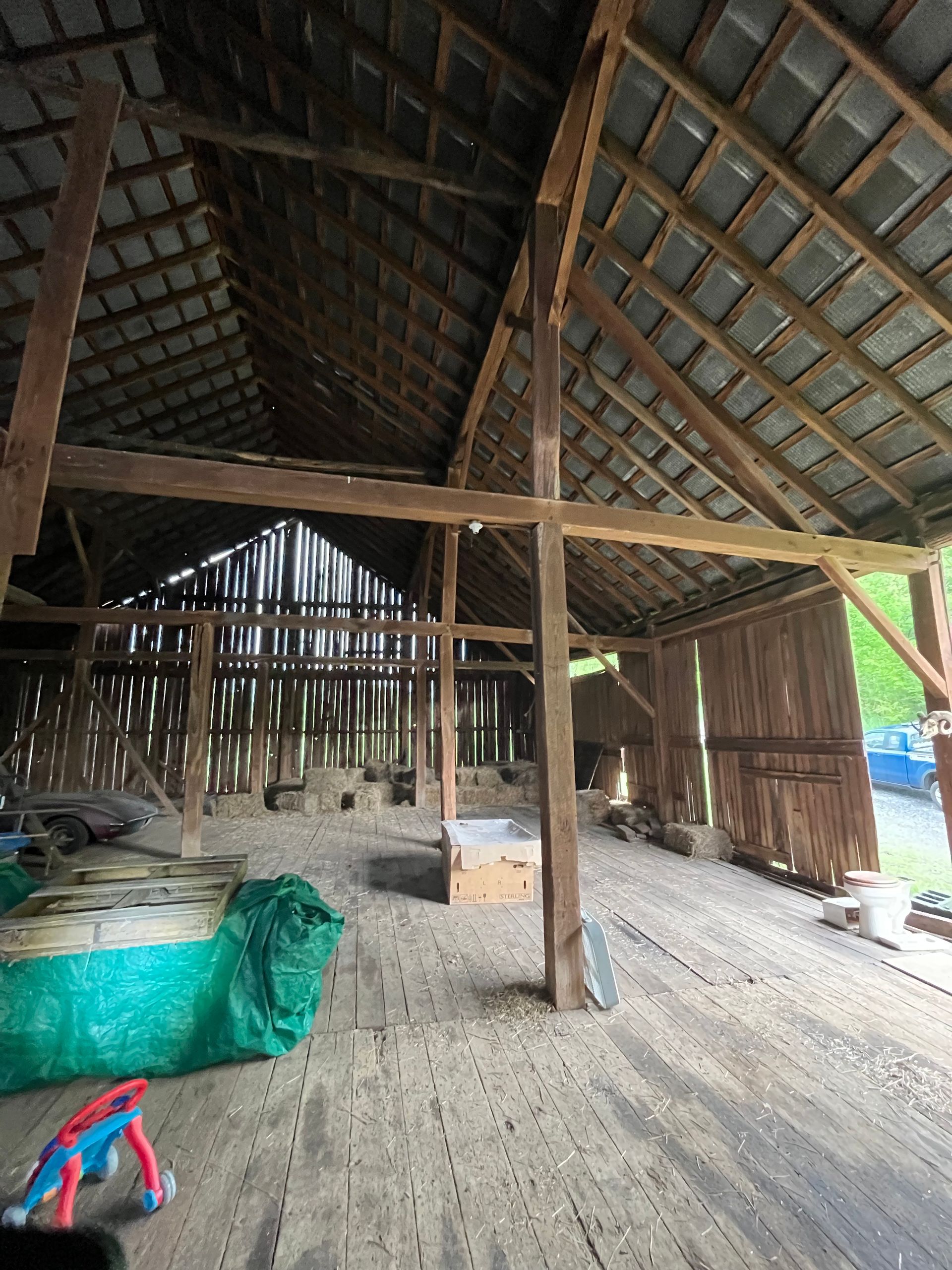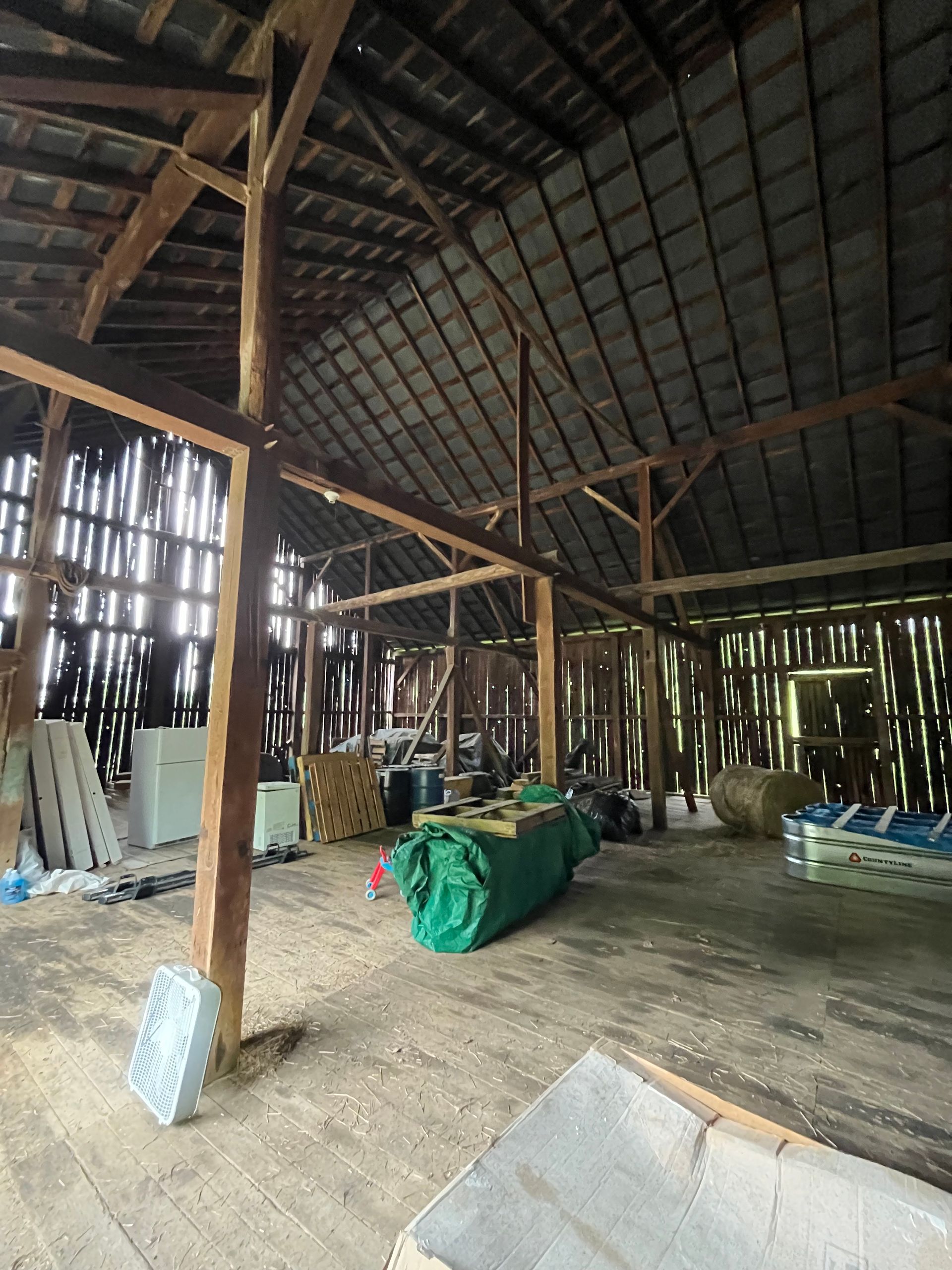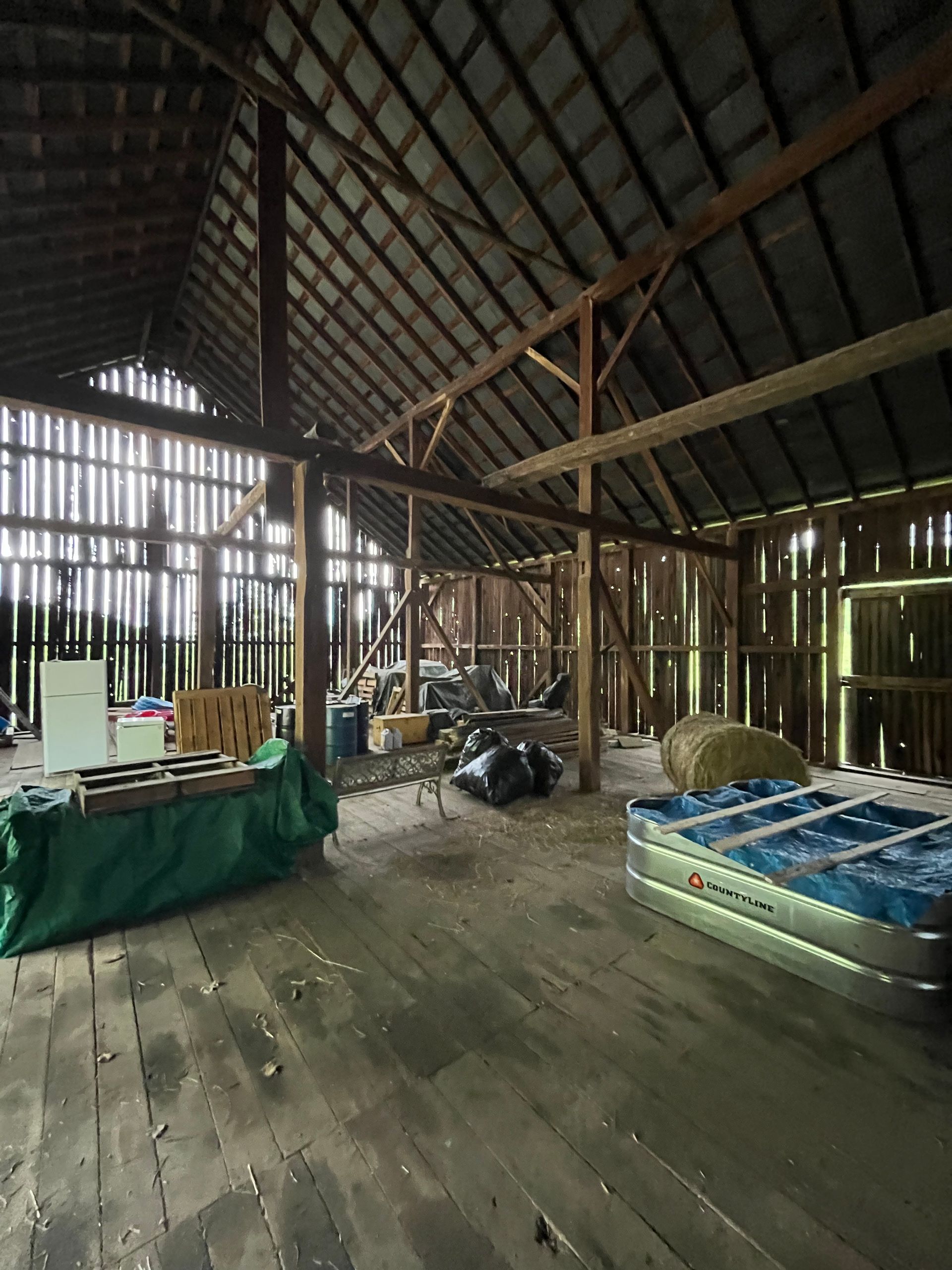 This substantial two-story antique barn offers unique redevelopment possibilities. The historic structure provides a versatile footprint for a variety of uses. The barn's classic two-story design, featuring a wall height of 13-21 feet on the first floor and a soaring 30-foot peak, creates a dramatic and open interior space.