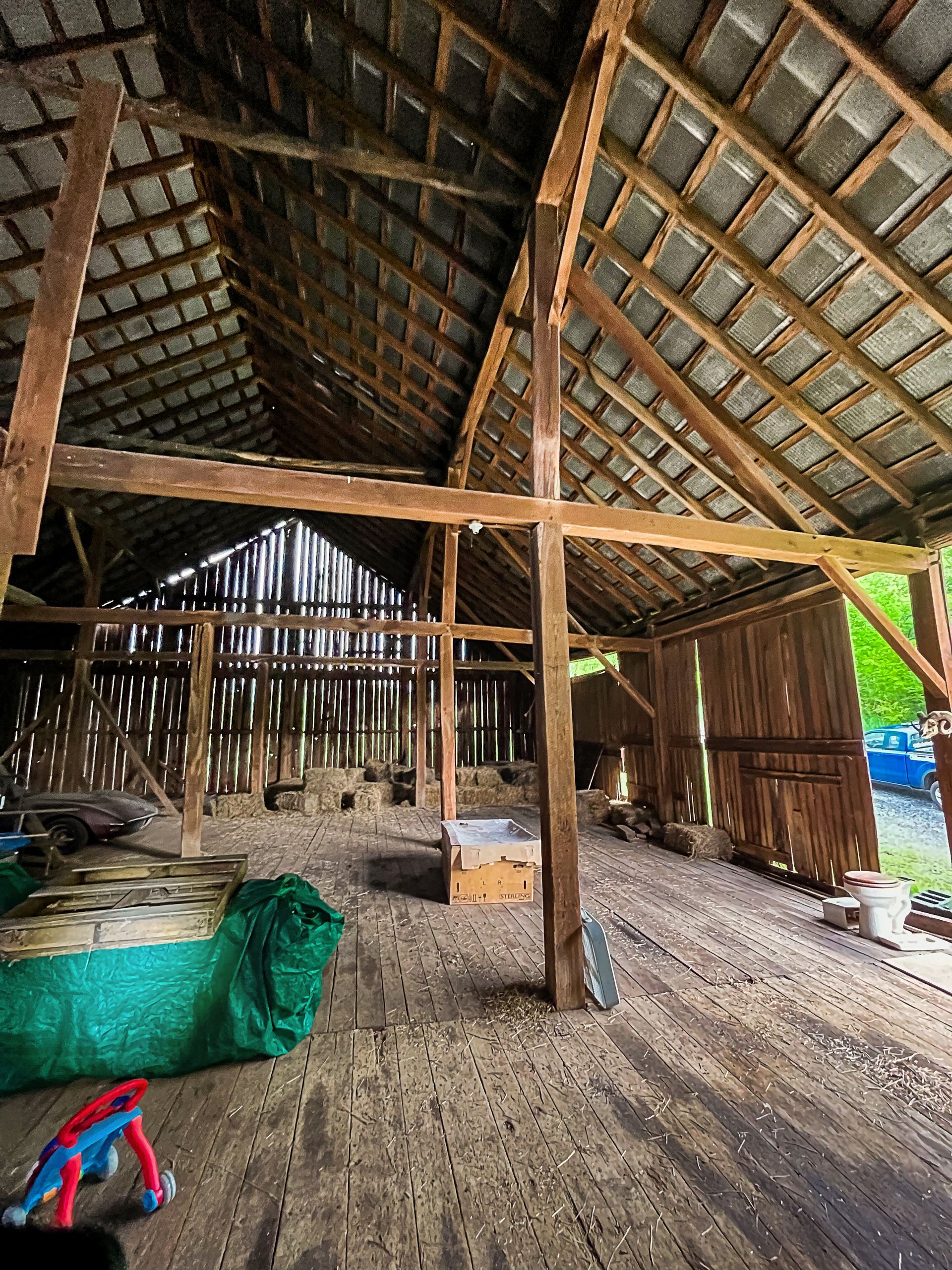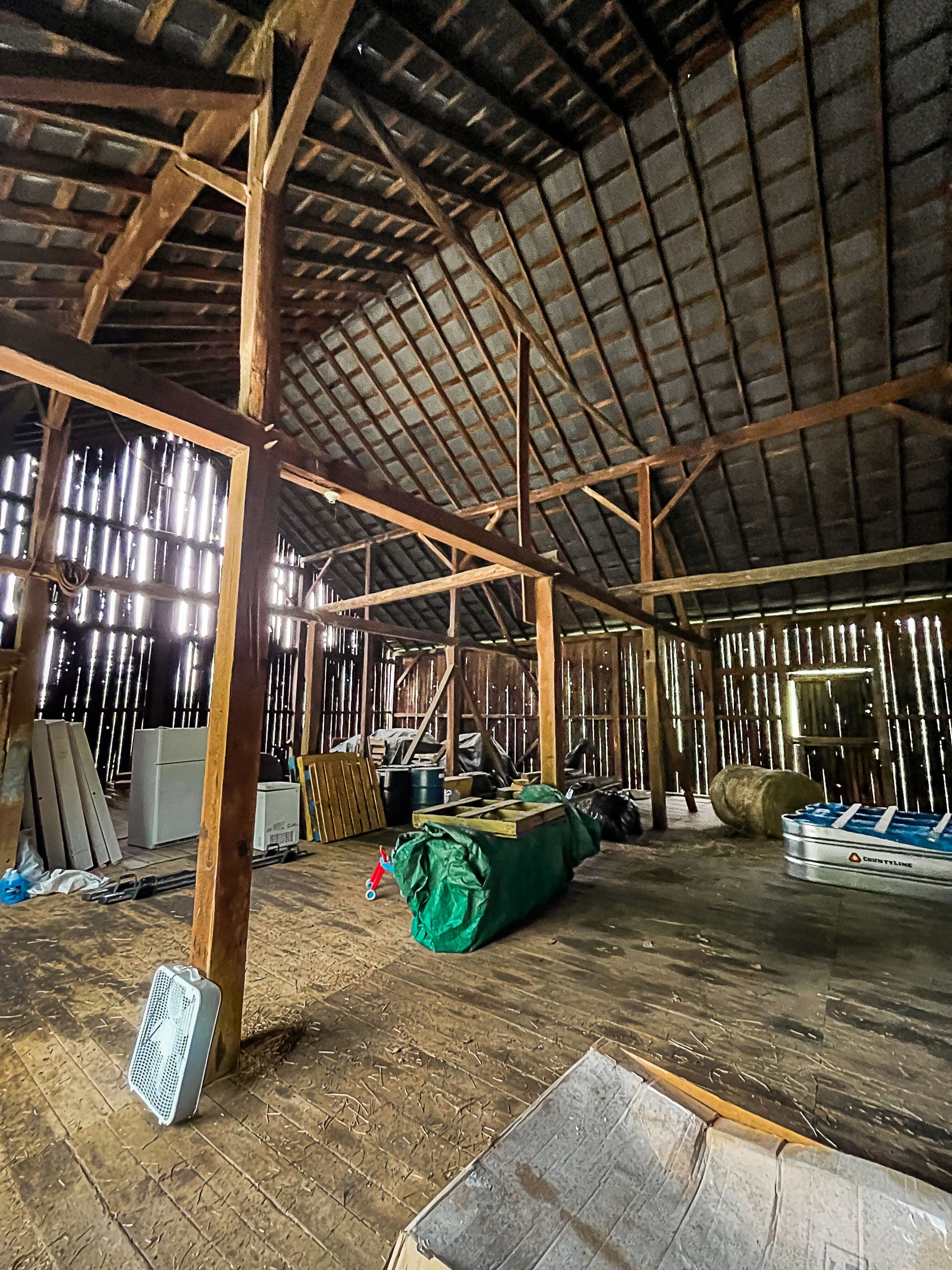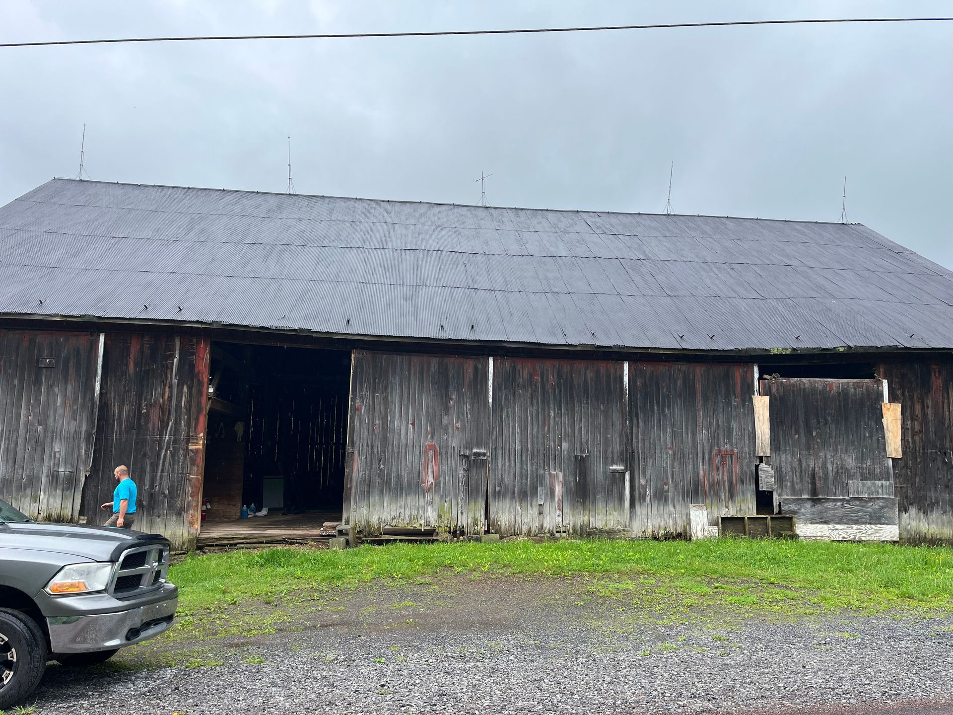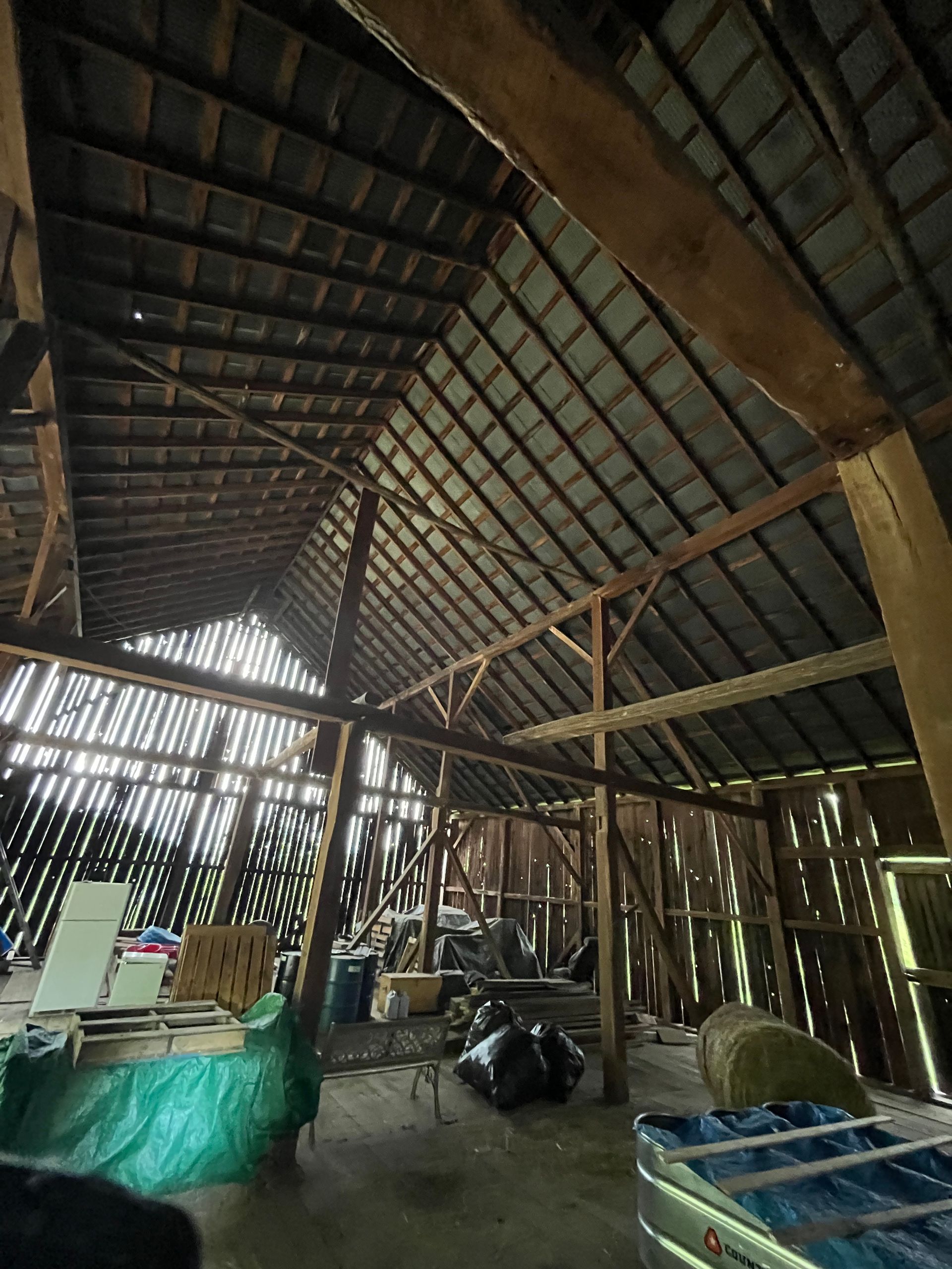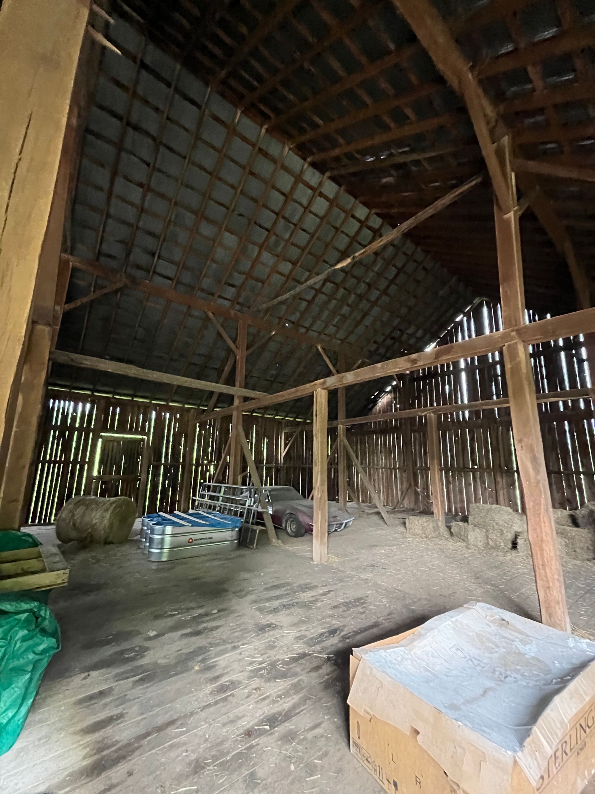 This substantial two-story antique barn offers unique redevelopment possibilities. The historic structure provides a versatile footprint for a variety of uses. The barn's classic two-story design, featuring a wall height of 13-21 feet on the first floor and a soaring 30-foot peak, creates a dramatic and open interior space.