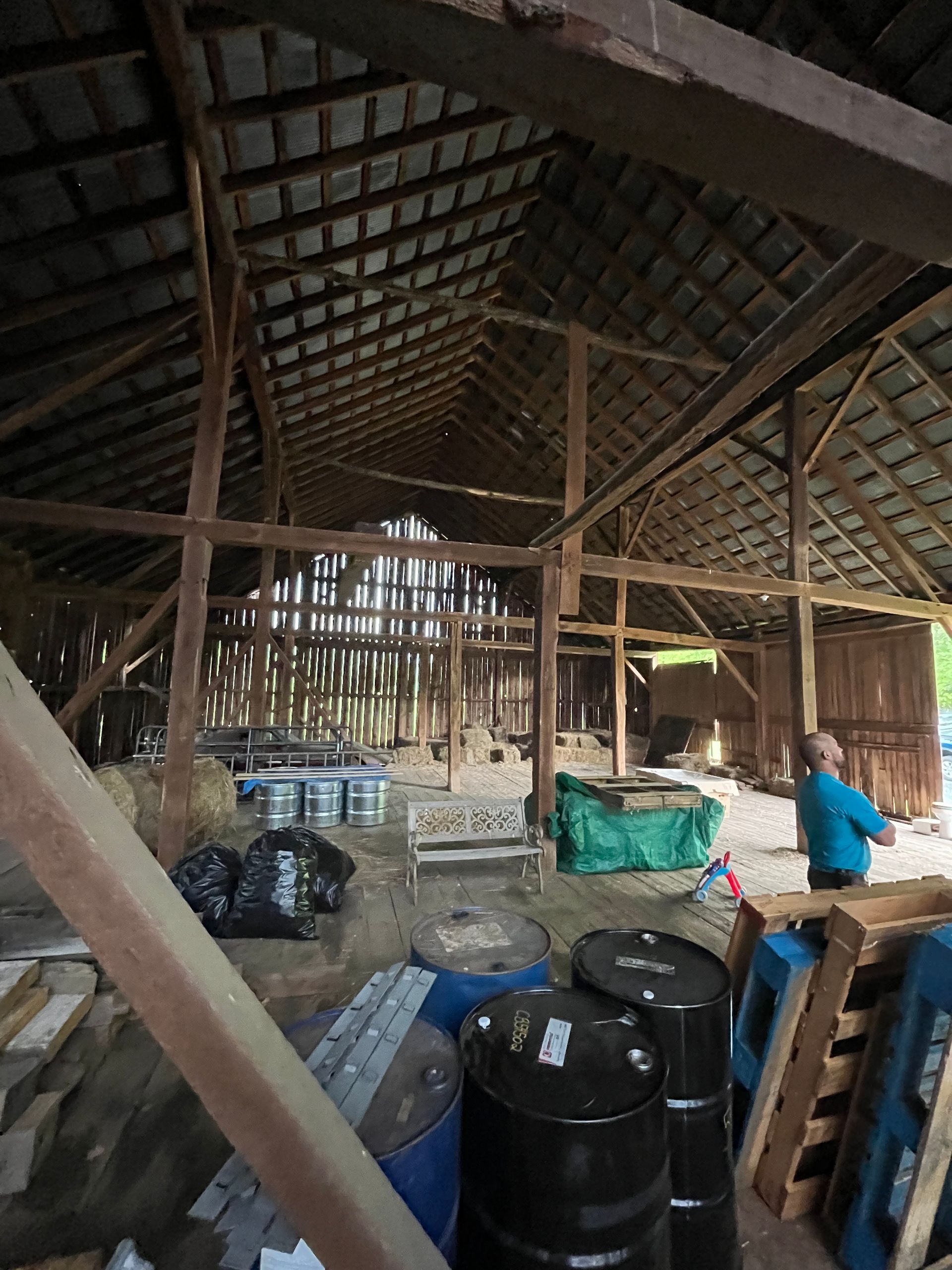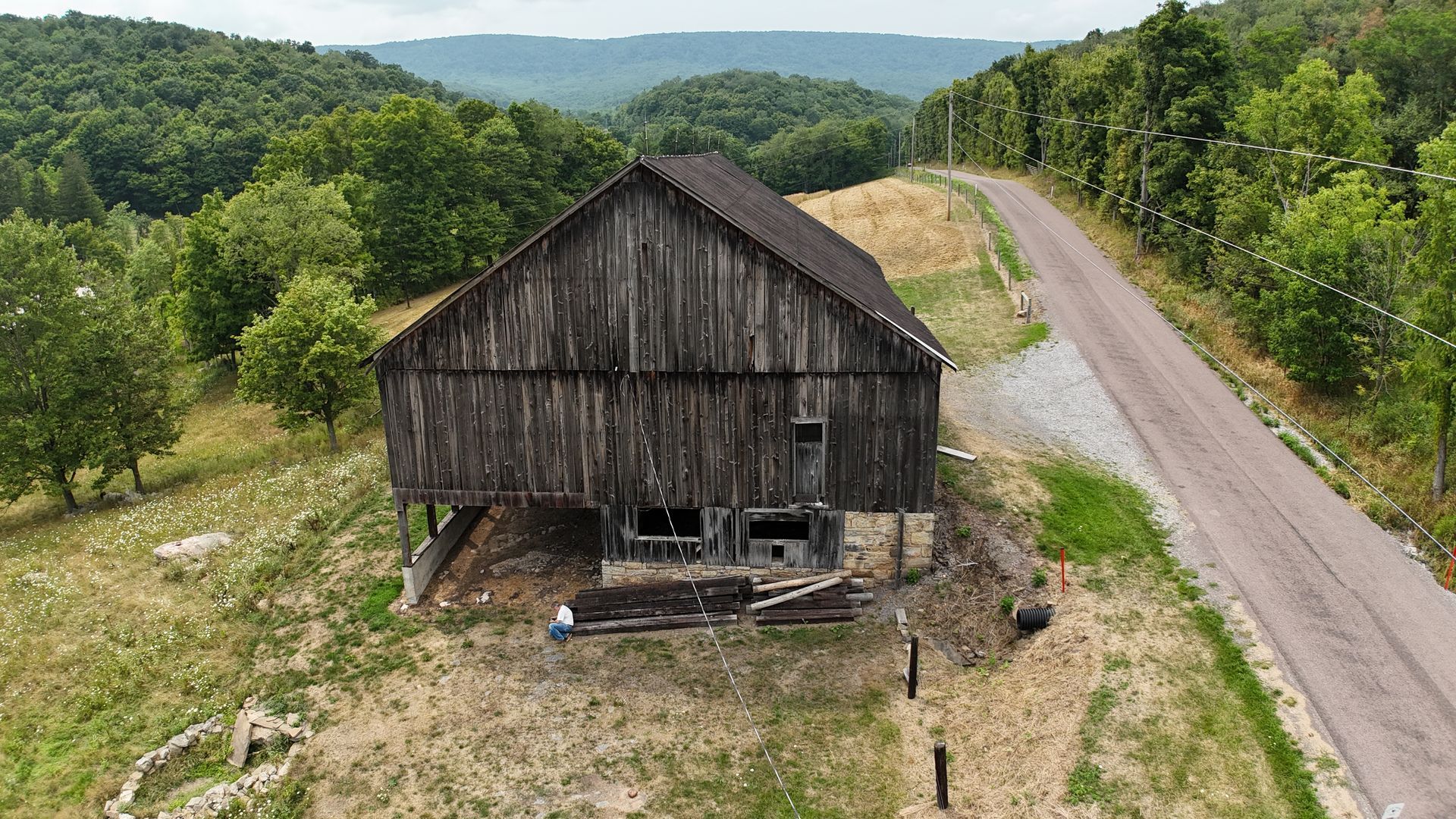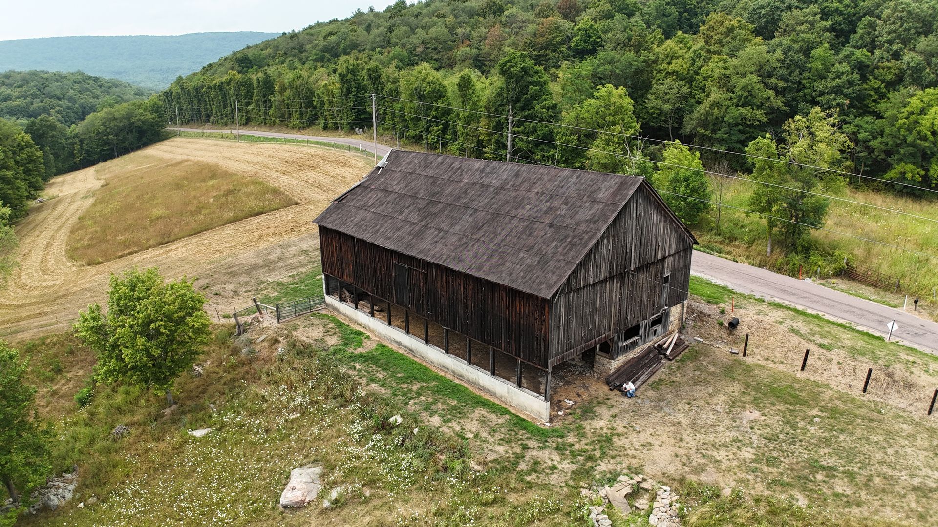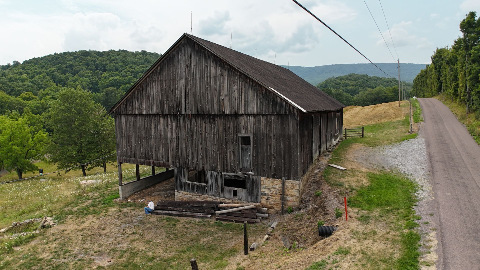 This substantial two-story antique barn offers unique redevelopment possibilities. The historic structure provides a versatile footprint for a variety of uses. The barn's classic two-story design, featuring a wall height of 13-21 feet on the first floor and a soaring 30-foot peak, creates a dramatic and open interior space.