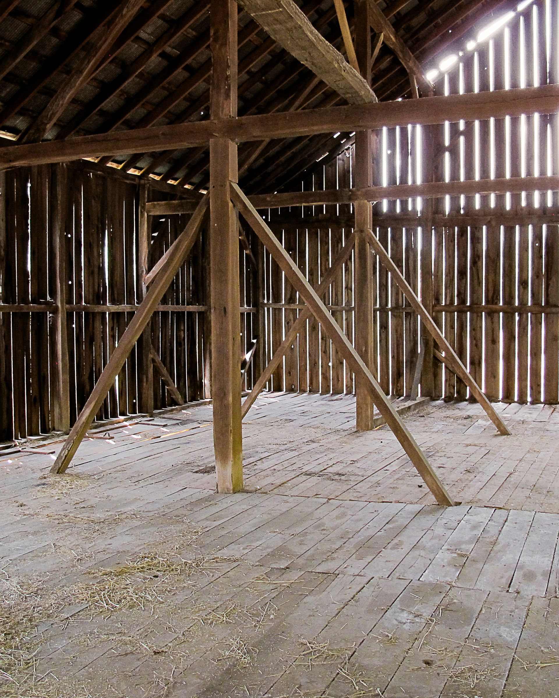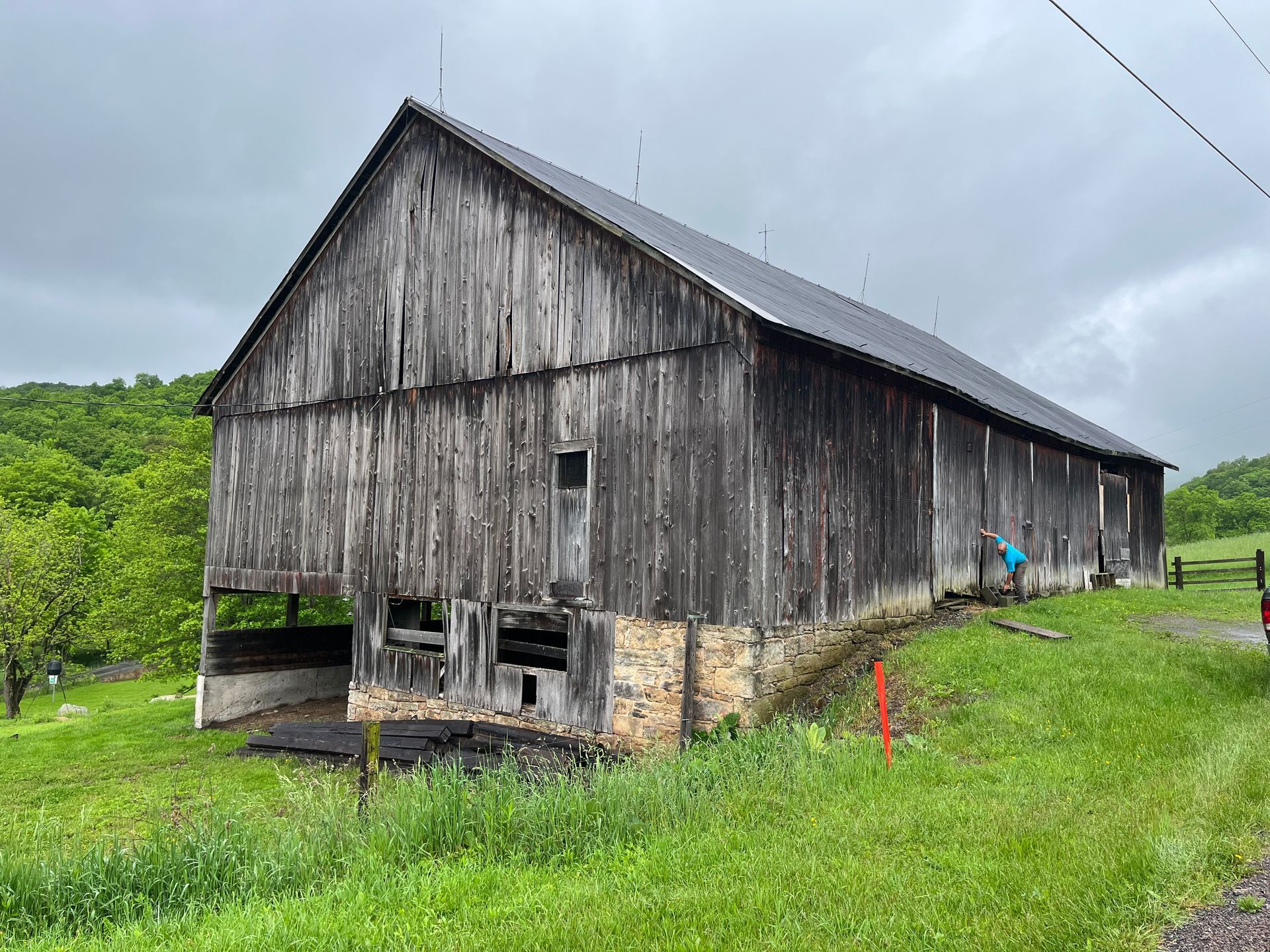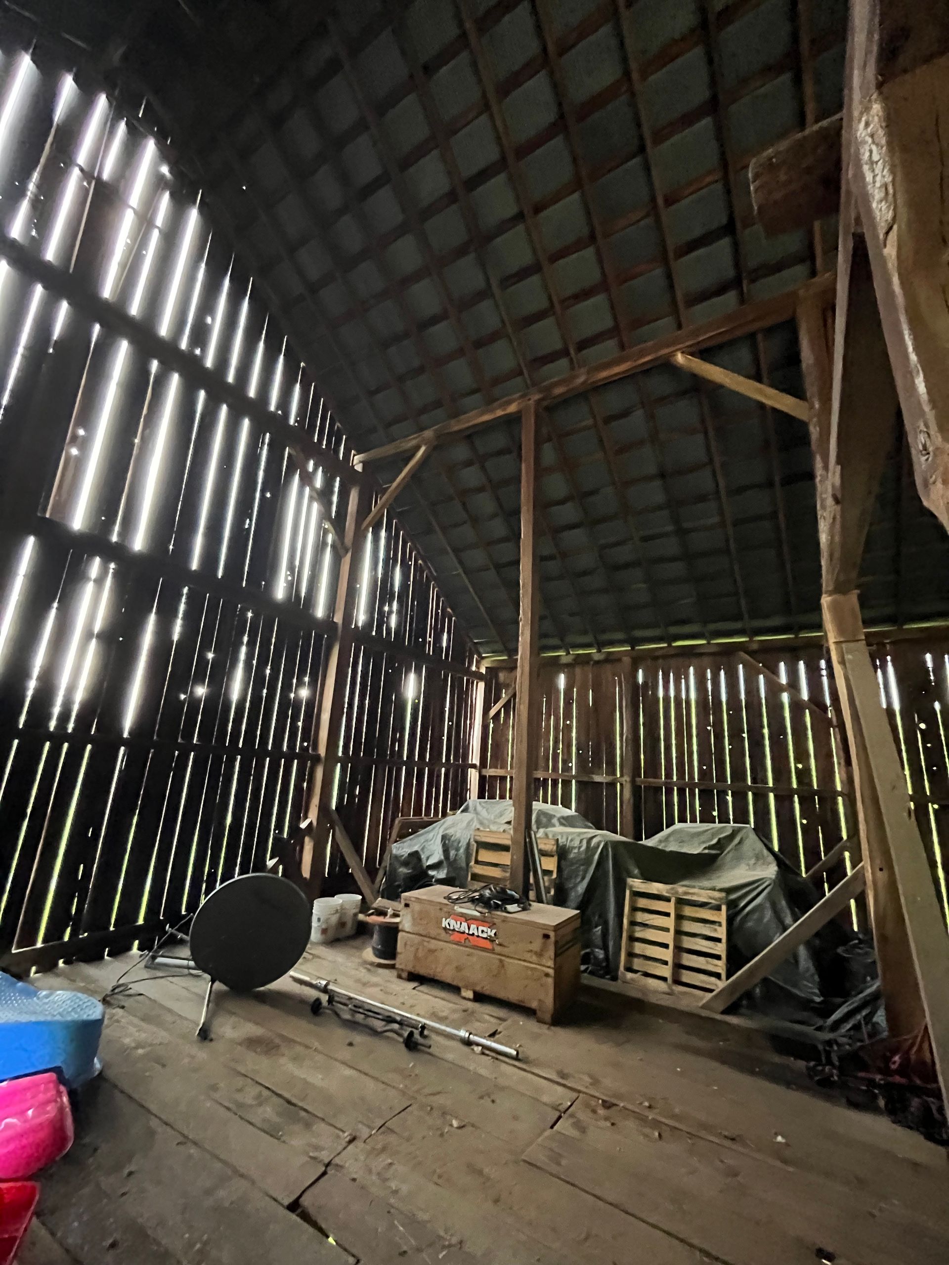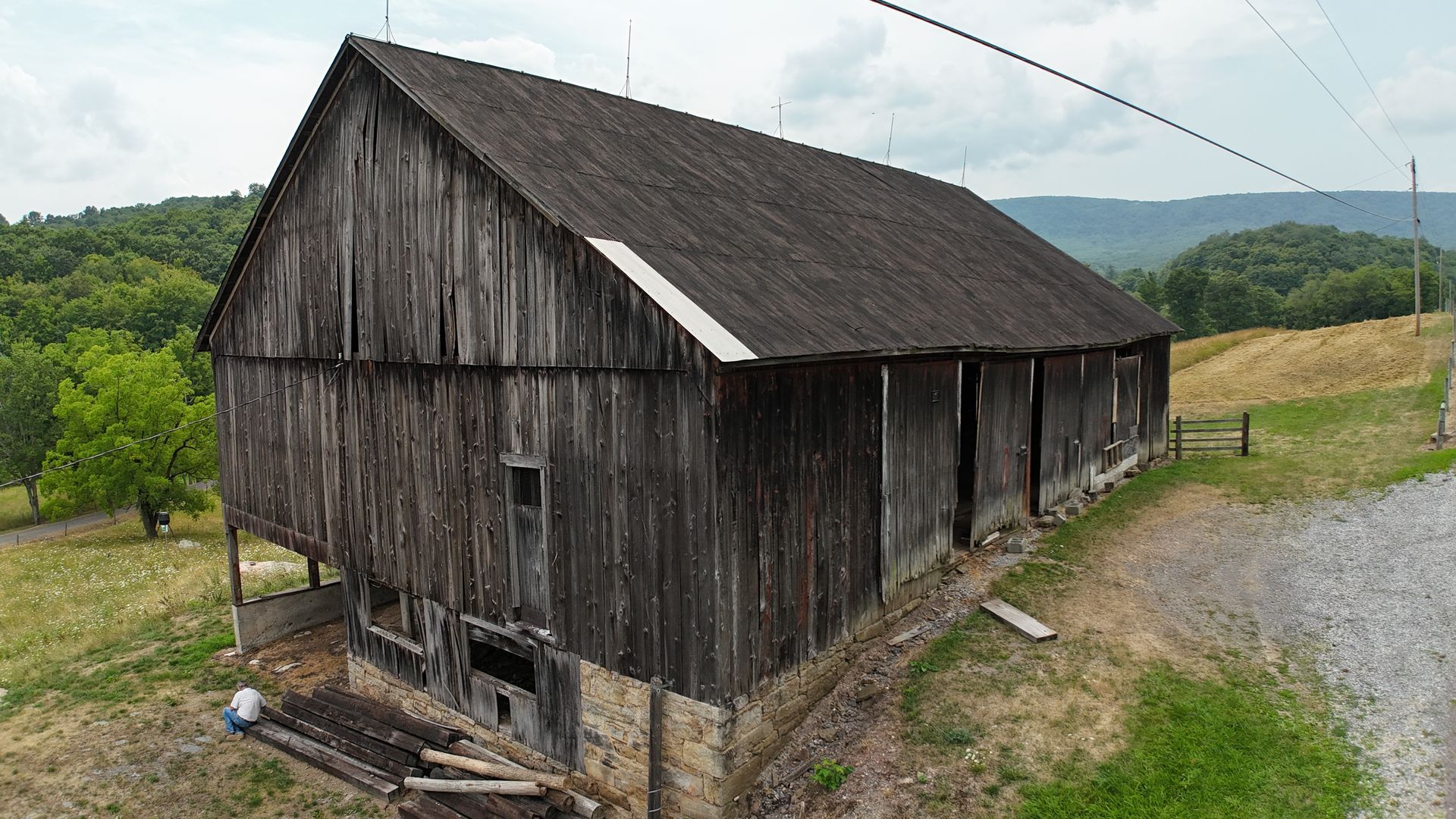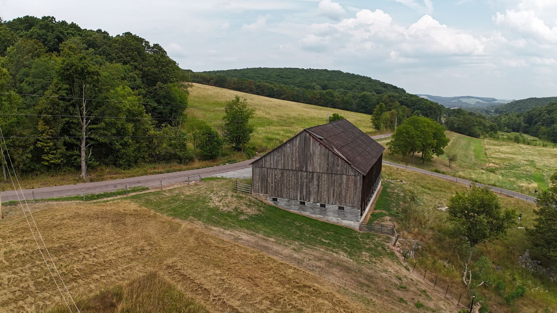 This substantial two-story antique barn offers unique redevelopment possibilities. The historic structure provides a versatile footprint for a variety of uses. The barn's classic two-story design, featuring a wall height of 13-21 feet on the first floor and a soaring 30-foot peak, creates a dramatic and open interior space.