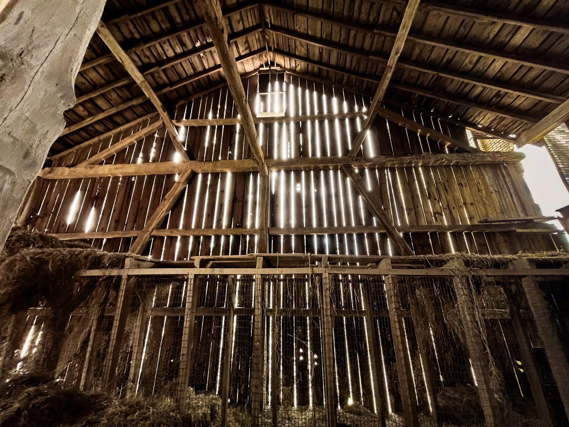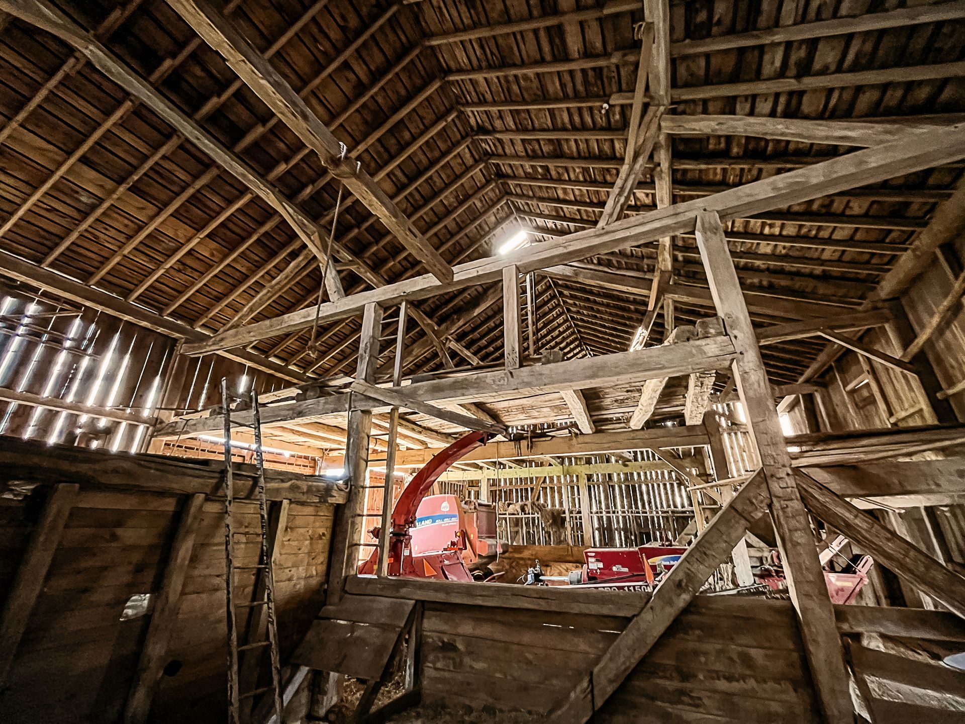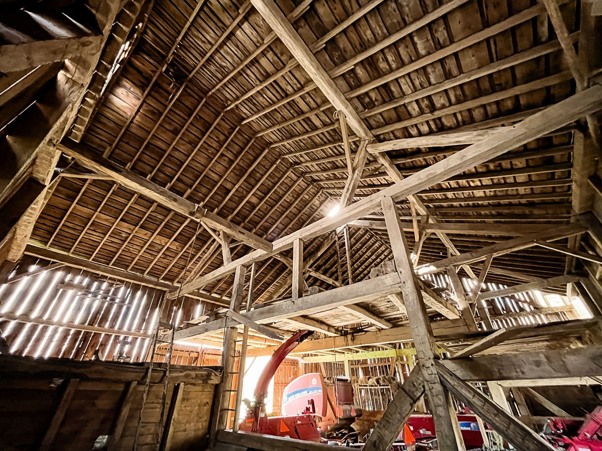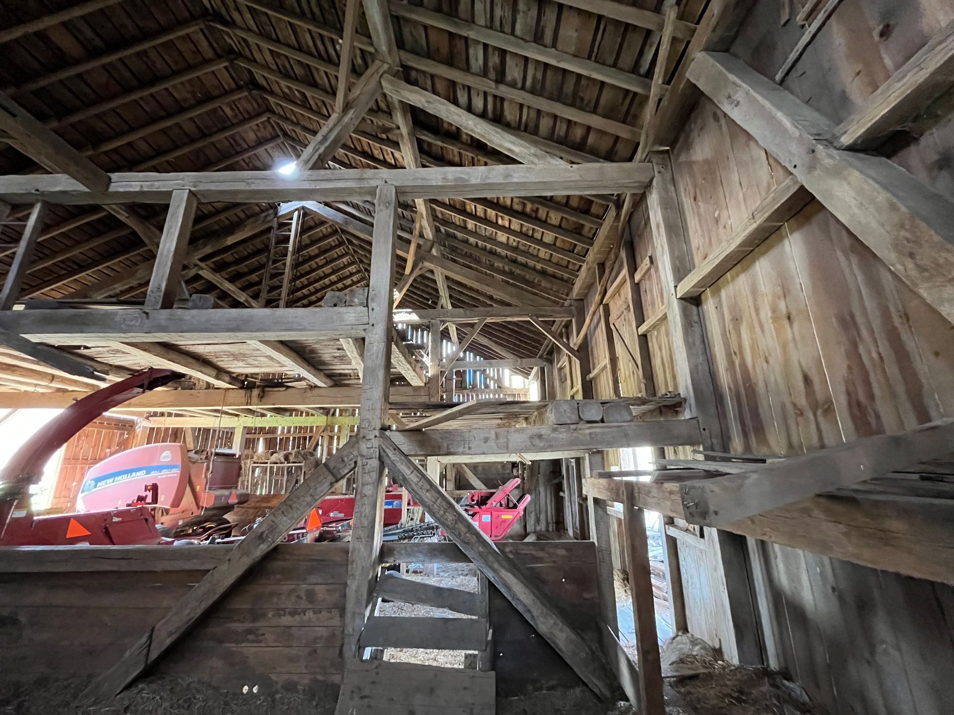 This antique heritage barn, constructed in 1890, is a beautiful reclaimed structure ready for reconstruction as a home or event space. Originally built in Grove City, PA, this barn is from the early era of European settlement. This small settlement quickly grew when coal was discovered in the area in the late 1800s. This barn was a part of this expansive growth. A piece of the regional history and heritage, this barn is a testament to the artistry of hand-hewn timber framing. It has a 44x60-foot footprint and 15-foot walls. Crafted from sturdy oak, the barn features a distinctive truss design that opens the threshing floor into a generous 28x38 foot open area. Its solid foundation and exceptional condition make it an ideal candidate for re-erection and transformation into a stunning home or event space.