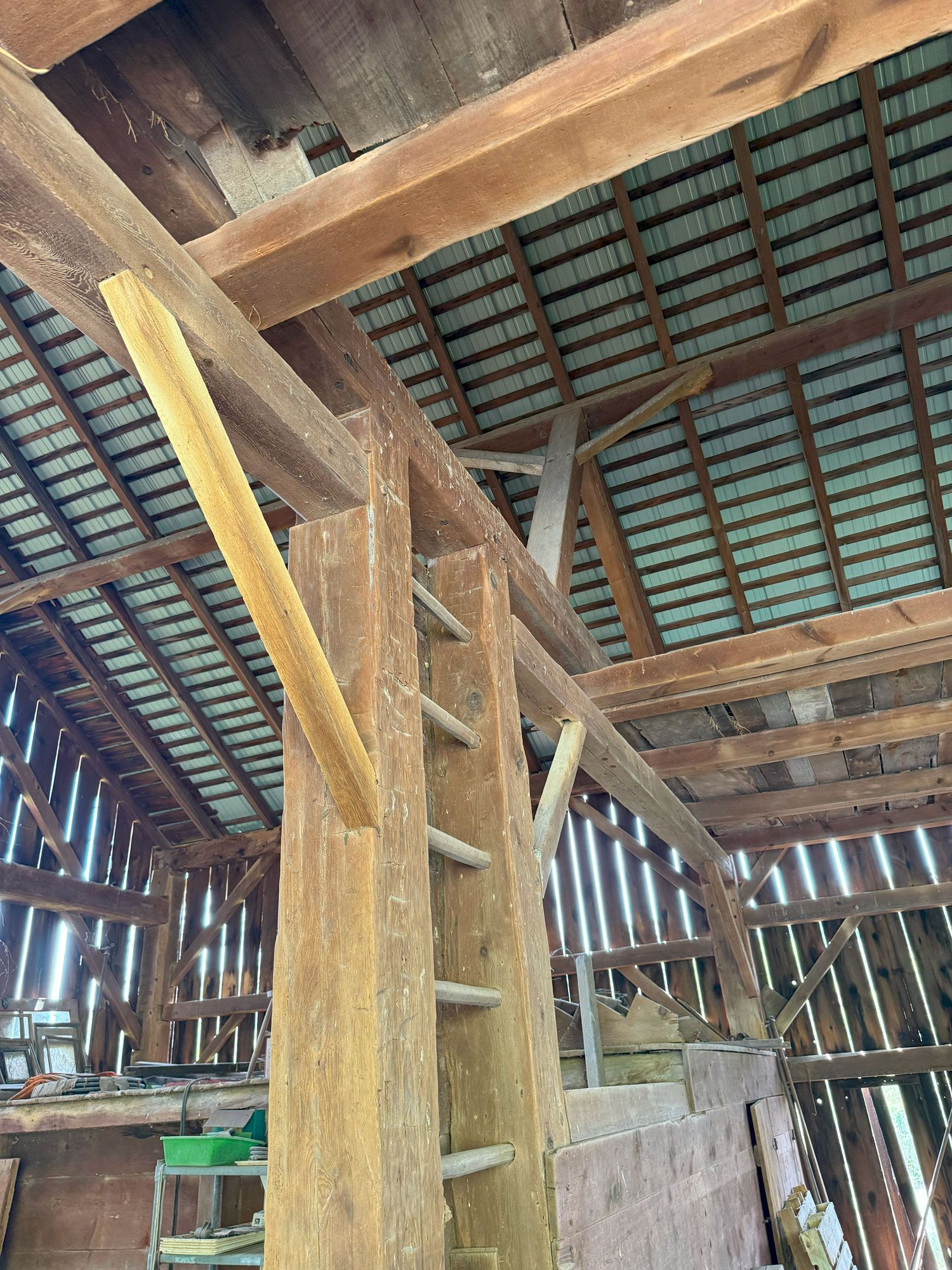 Truly unique in how robust this frame is. The main timbers in the frame measure 11"x 11" and 12"x 12". Once restored, the warm pine timbers will warm a home to its finest. The central space is only interrupted by two big timber ladders and the rest is open for the design of your project. This barn also has an addition that, as an optional space that can be added anywhere around the perimeter of the barn, can serve so many creative purposes. All the more reason to give this barn frame a good look.