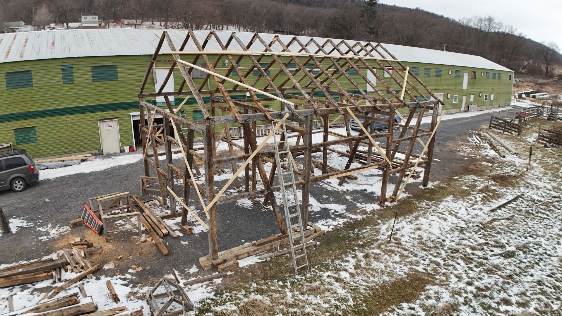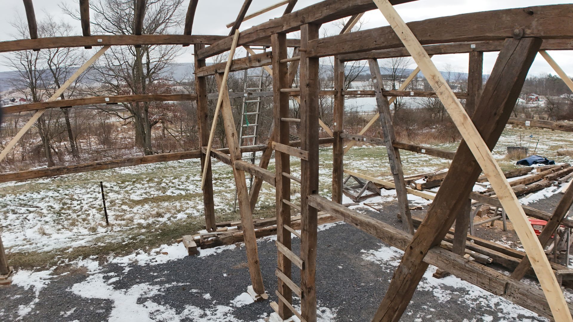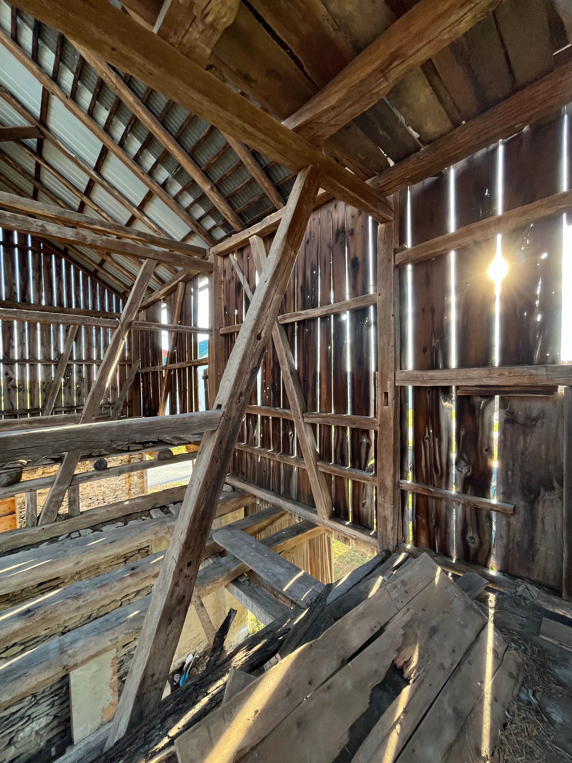 Double tight ties in the bents are done for added strength and durability. It is not uncommon for a barn to hold 50-100 tons of hay on the upper floor. Everything about a barn and its construction is designed around these needs.