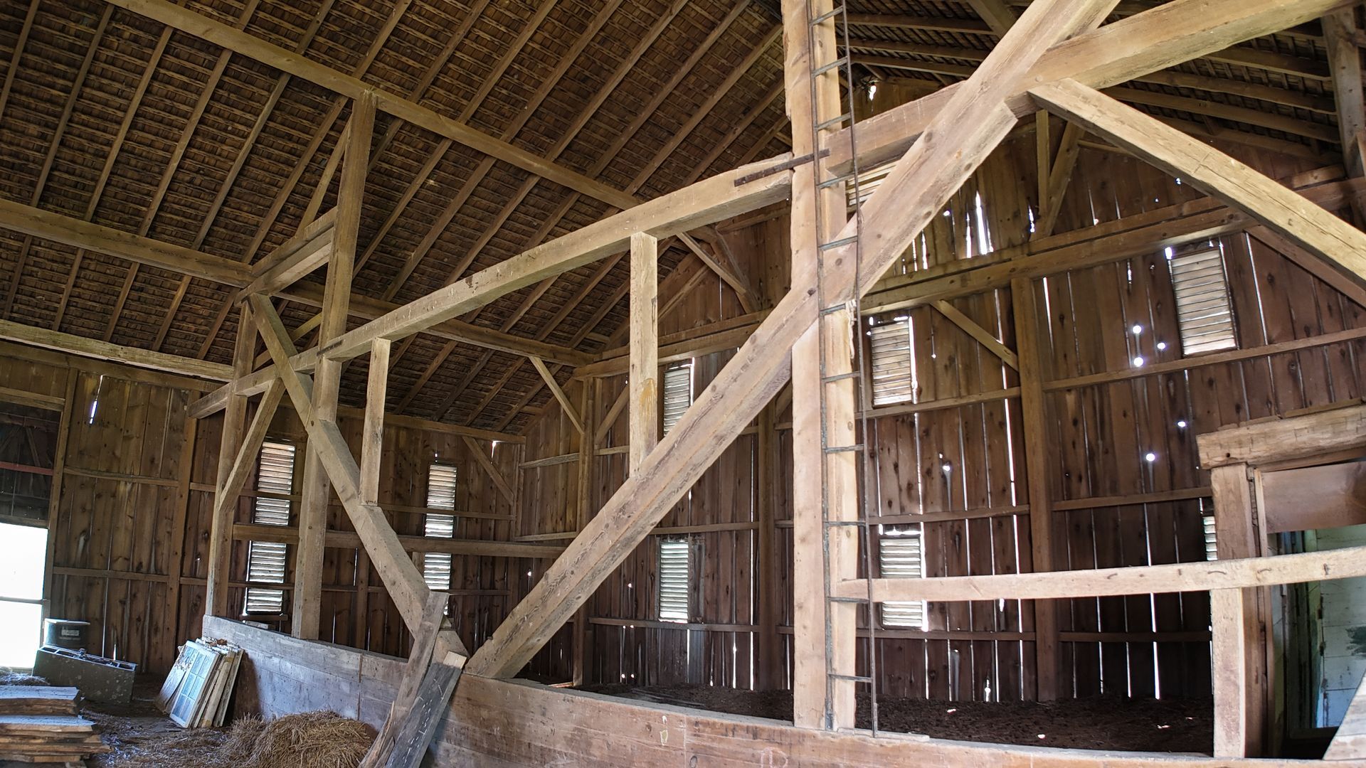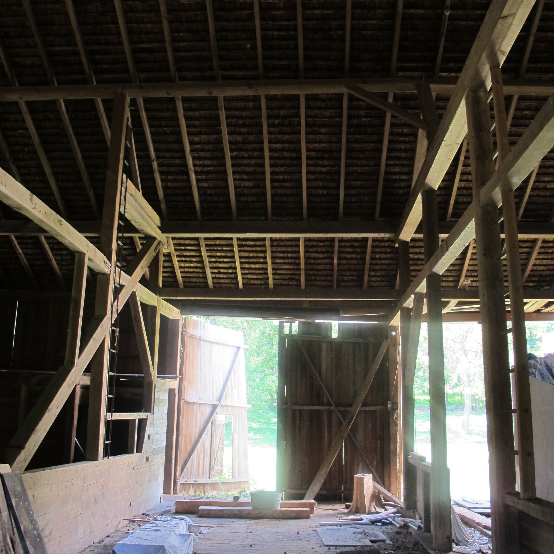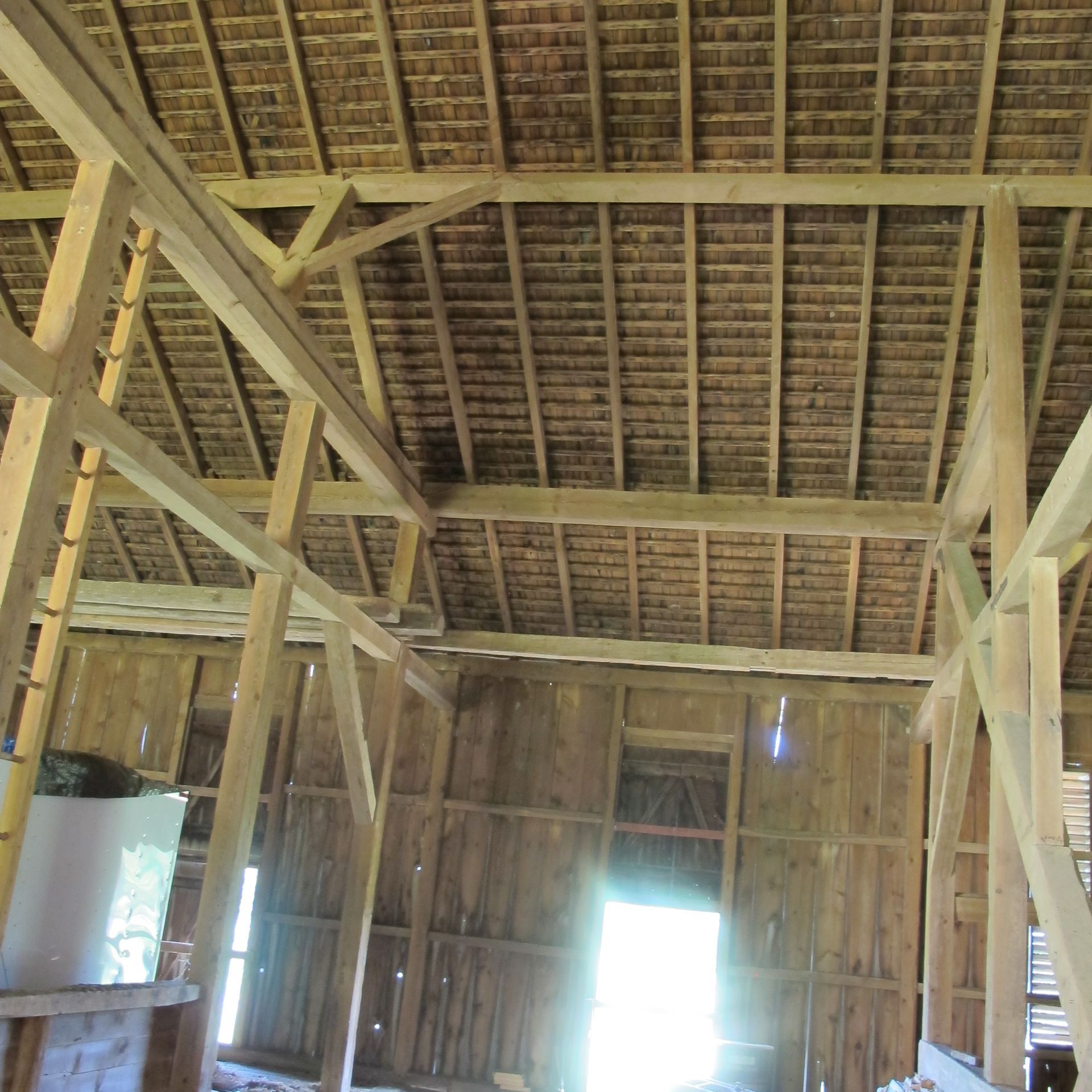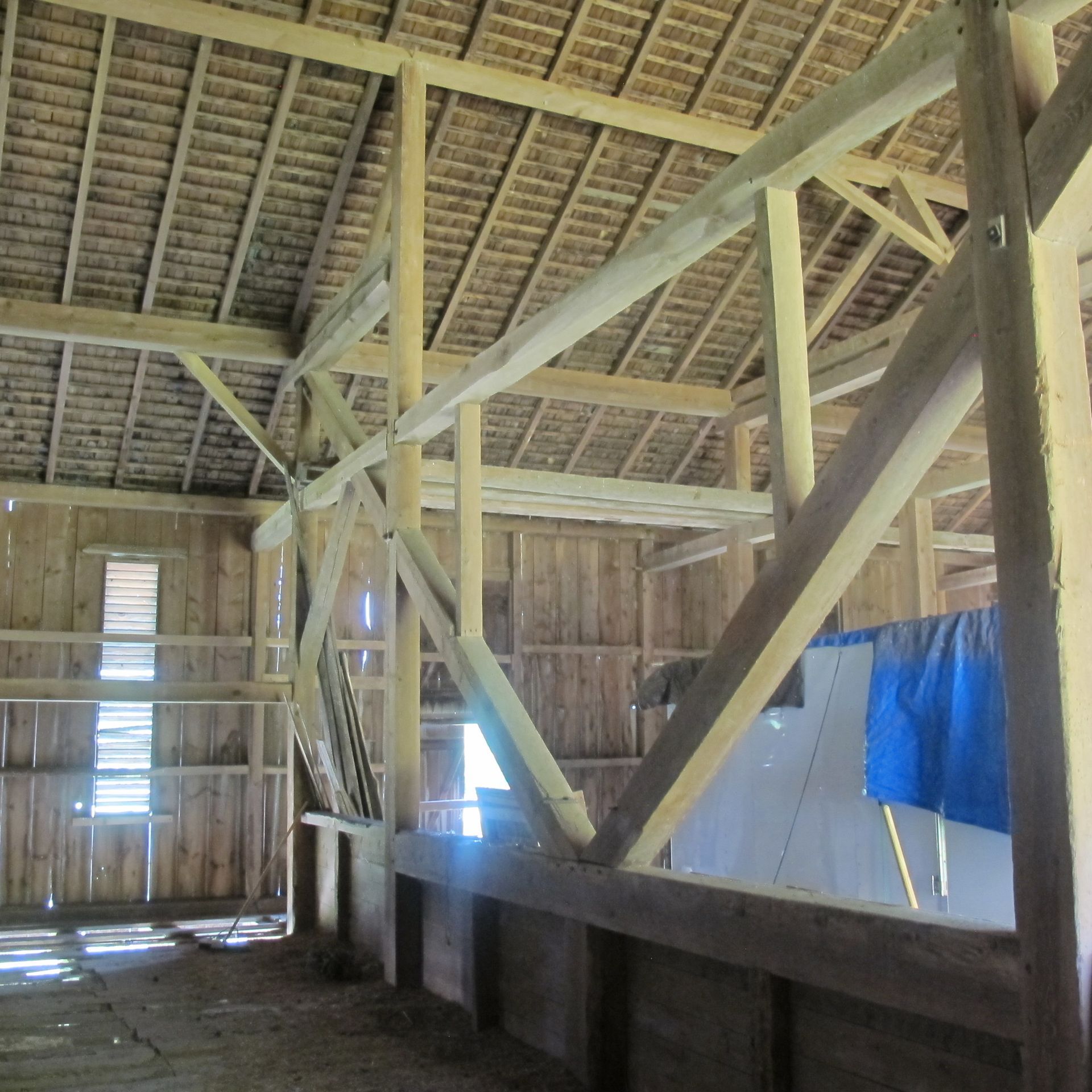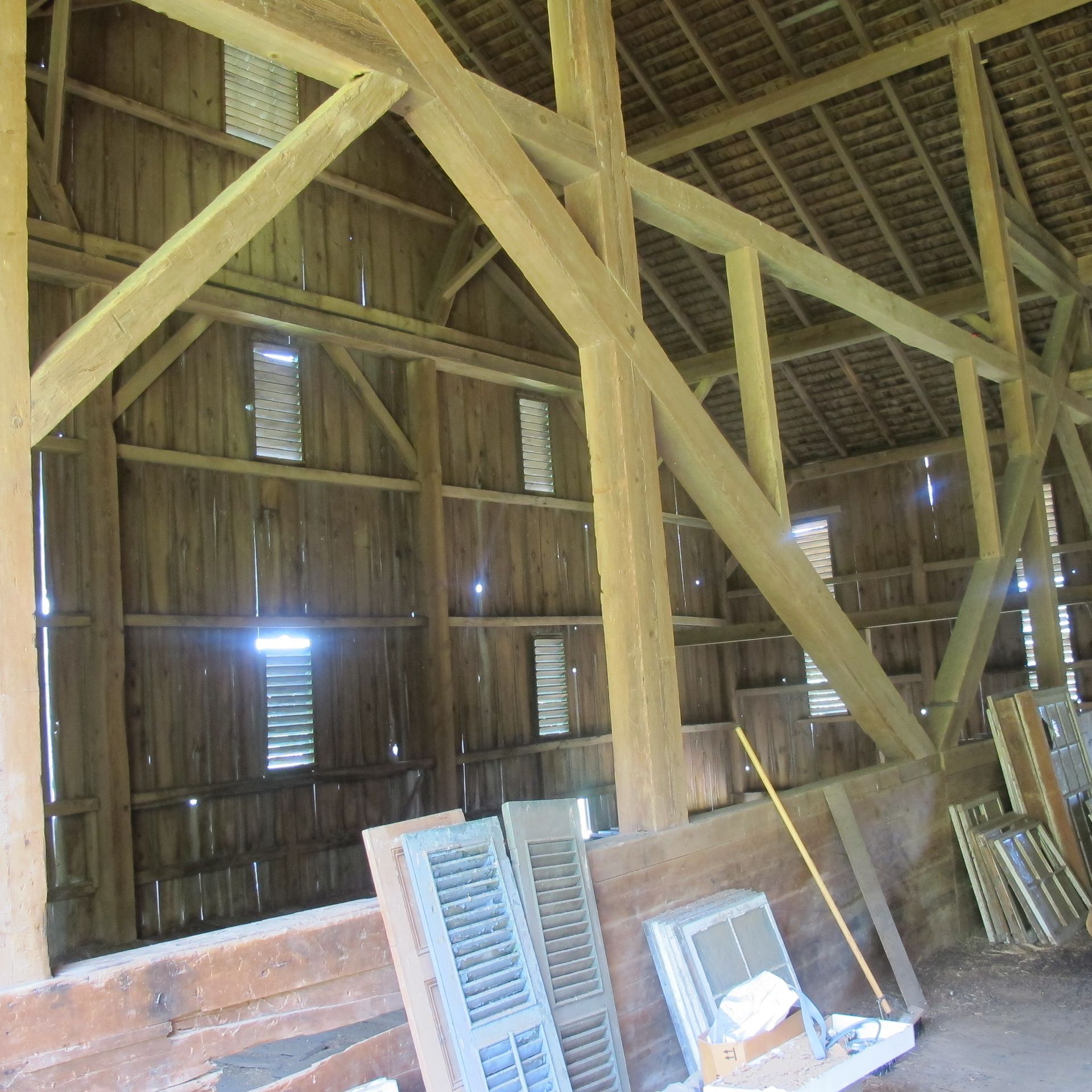 This barn has a unique mix of both hard and soft wood for incredible markings and diversity. It has large wind braces for a stunning accent look for the space.
